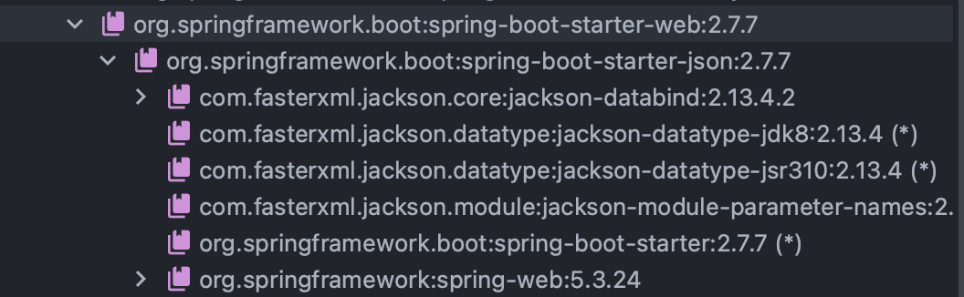 spring-boot-starter-**.jar자체에 해당 외부 라이버리를 이미 jar로 갖고 있기 때문인 것 같습니다???