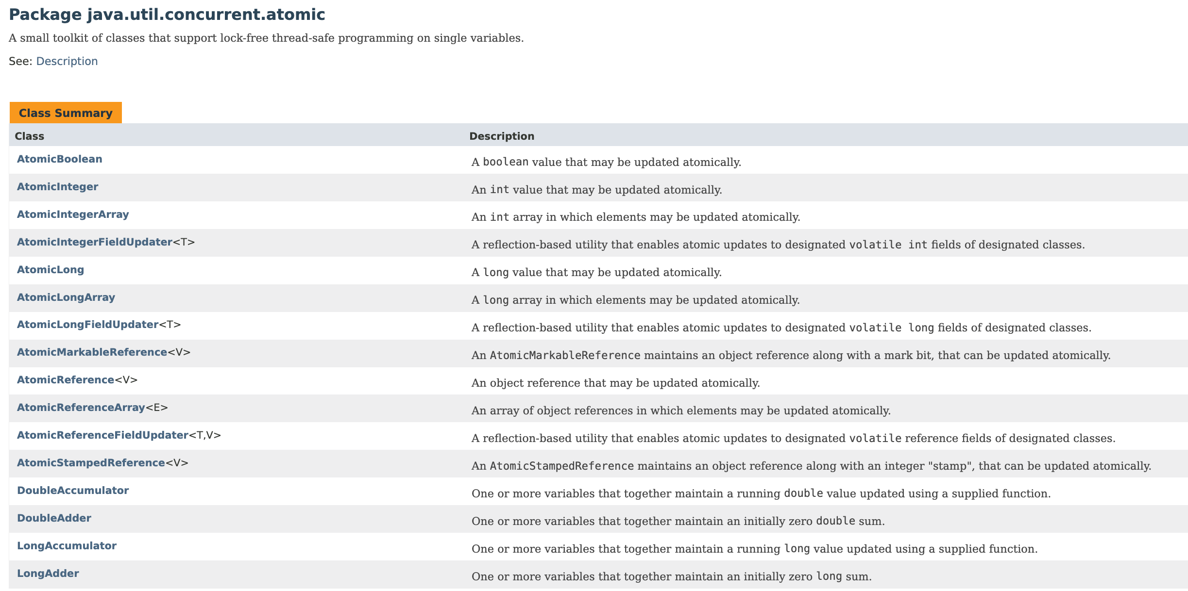 멀티 스레드 환경에서 Lock 을 획득하는 과정의 원자성을 보장해주기 위해 자바에서는 다음과 같은 API 를 제공합니다.