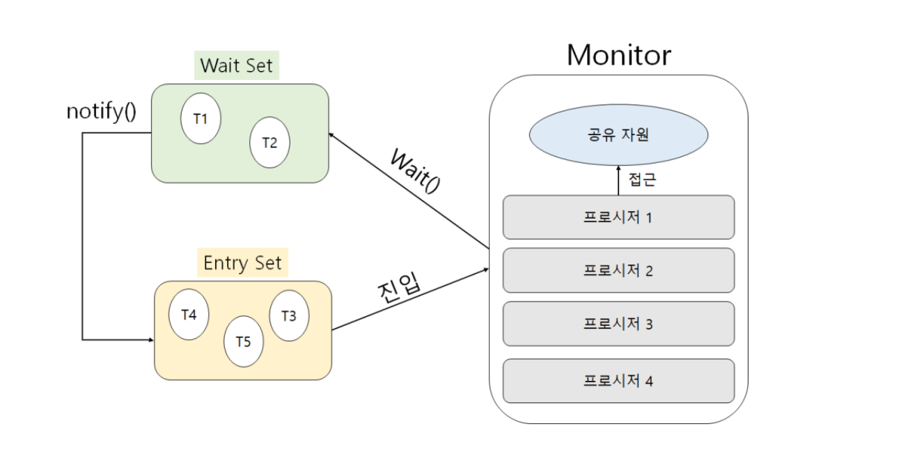 자바에서 Monitor 는 특정 객체나 특정 코드 블록에 걸리는 일종의 Lock 이라고 생각해도 무방합니다. 자바는 Monitor 를 배타적 목적 외 공동작업을 위해서 사용합니다.