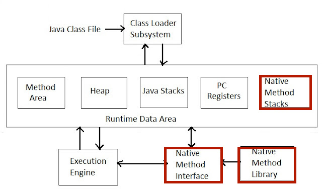 JVM은 크게 Class Loader SubSystem, Runtime Data Area, Execution Engine, JNI(Native Method Interface), Native Method