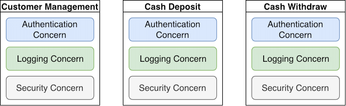 OOP는 주로 주요 비즈니스 로직을 객체로 추상화하여 모델링하는데 중점을 두기 때문에 중복되는 관심사(Concerns) 문제를 해결하기에는 제한적입니다.