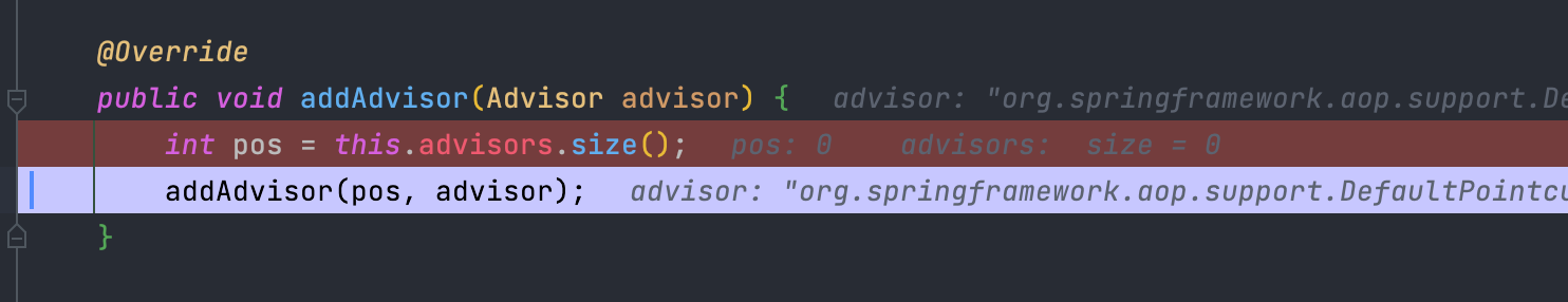 두번째로 Advisor를 등록합니다. Advisor는 Pointcut과 Advice가 저장되어 있는 객체로 한쌍으로 이루어져있습니다.