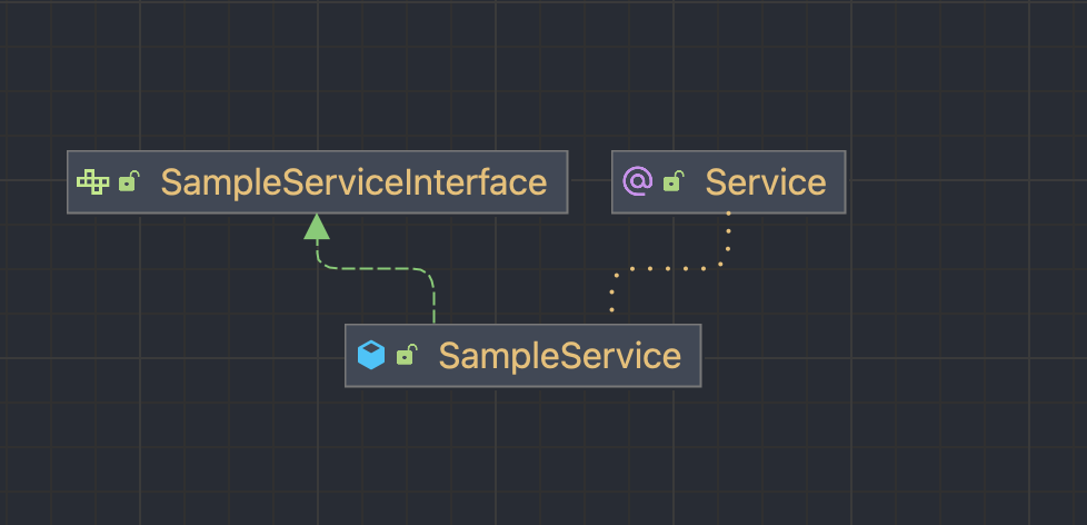 먼저 동작 방식을 확인하기 위해 프록시 대상 클래스인 인터페이스를 구현한 SampleService클래스를 생성합니다.