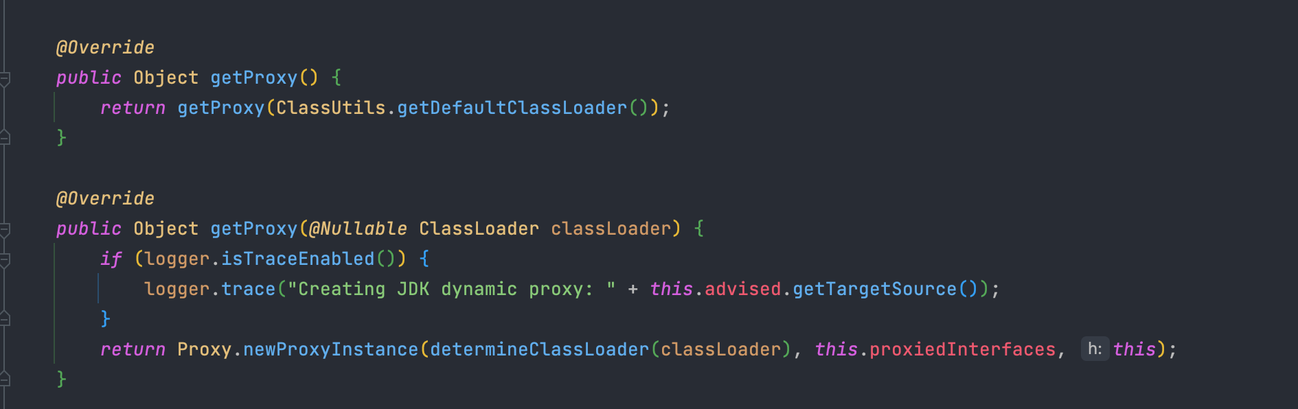 AopProxy는 getProxy() 메소드를 통해 각 구현체의 전략에 따라 프록시 객체에 접근할 수 있습니다.