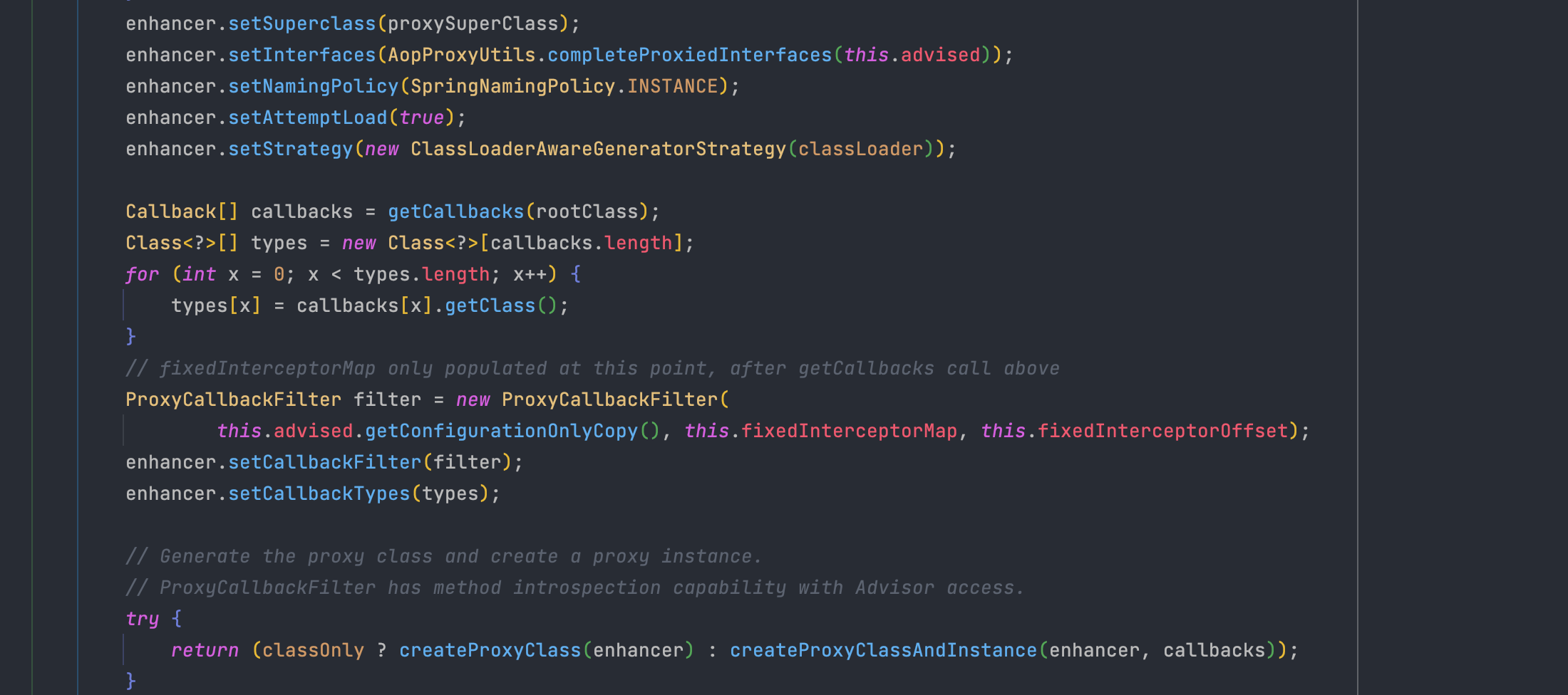 CGLIB는 Enhancer 객체를 통해 프록시를 생성합니다.