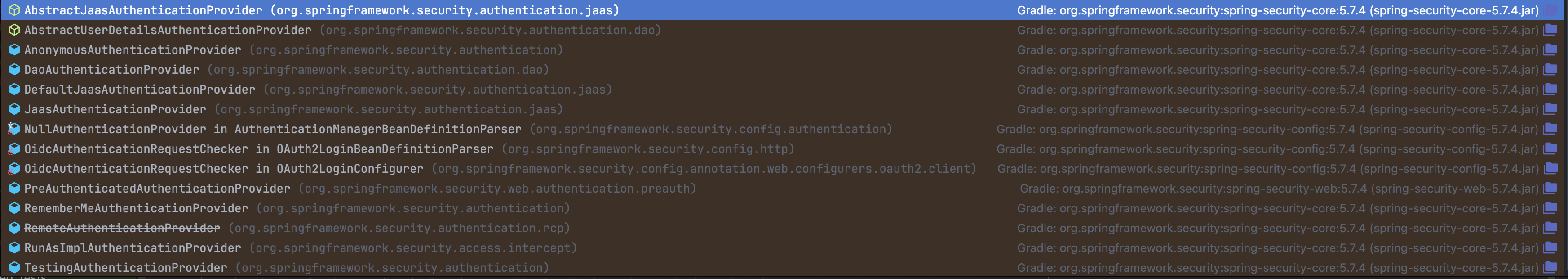 다음은 기본으로 제공하는 주요 AuthenticationProvider 에 대한 설명입니다.