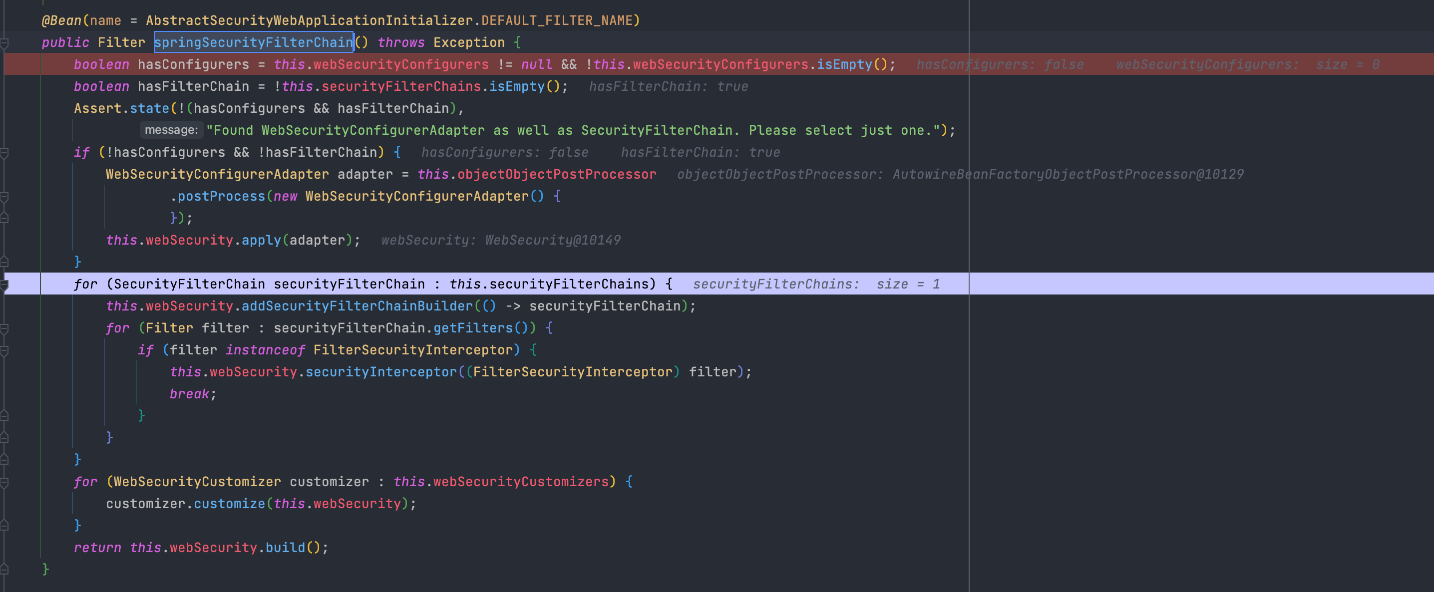 boolean hasFilterChain = !this.securityFilterChains.isEmpty();